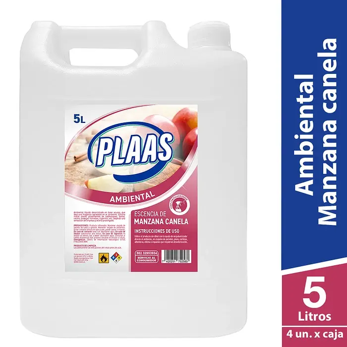 Desodorante ambiental Plaas 5 lts, aroma Manzana canela, caja 4 unid - PL4135